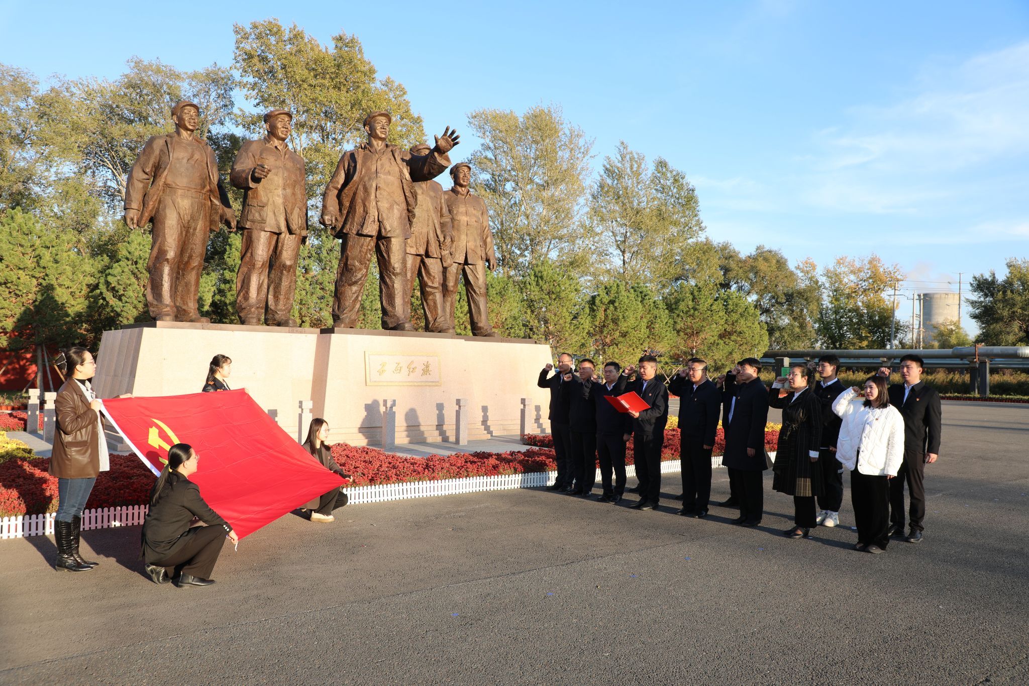 在大庆油田碳中和生态园广场庄严肃穆的“五面红旗”雕像前,党员们认真聆听讲解,了解油田会战时期英模们攻坚克难、艰苦奋斗的感人事迹,深刻感悟“为国找油”的坚定信念和“纪律如铁”的优良作风。大家面对党旗重温入党誓词,进一步坚定“忠诚干净担当”的政治信念。