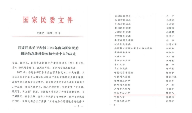 另悉,国家民委印发了《关于表彰2023年度向国家民委报送信息先进集体和先进个人的决定》,我校人文科学学院副院长兼铸牢中华民族共同体意识研究基地主任陈竞飞教授荣获先进个人称号。