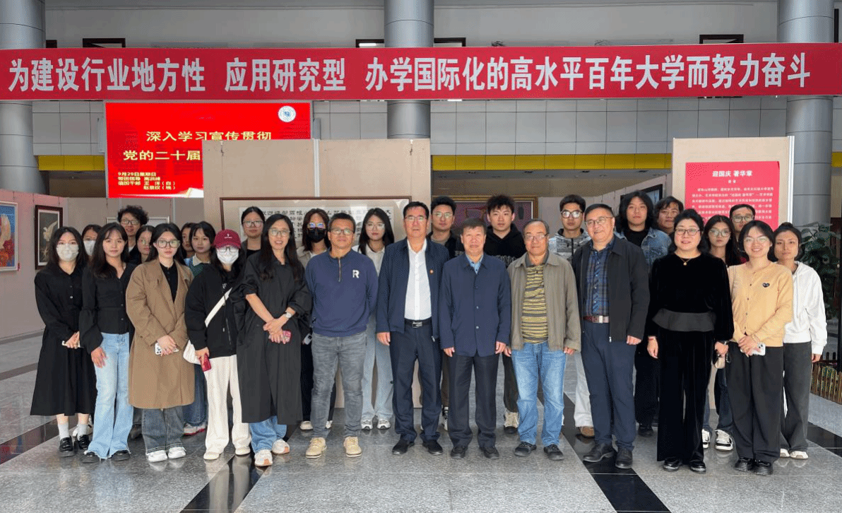 (通讯员 白鹤翔 记者 吕鸿浩)为庆祝中华人民共和国成立75周年,日前,由党委宣传部主办、艺术学院承办的“迎国庆 著华章”——艺术学院美术教师作品展在机关楼一楼大厅举办,校党委副书记高洪峰,校党委常委、宣传部部长徐清亮,大庆精神教育研究中心、艺术学院相关领导参观作品展。